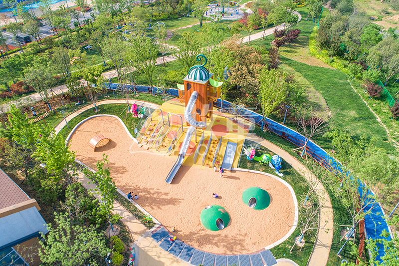 乐园的每一个主题片区都体现了一种亲近自然的精神理念,独特的自然环境以及充满新意的游乐设备,使游乐空间成为一个独一无二的打卡圣地,它与众不同,引人入胜,并为社区生活增添色彩,创造了一个让所有年龄段的孩子都能参与进来的欢乐场地。